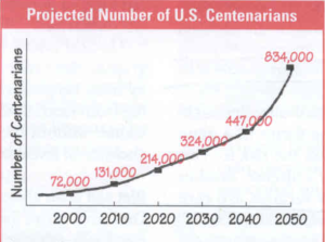 • In 2025 there are over 100,000 Americans over 100 years of age and by the year 2030, there are expected to be over 300,000 Americans to be over 100 years of age. In the year 1933, Americans were lucky to live past the age of 60.